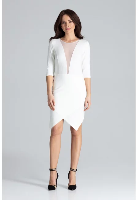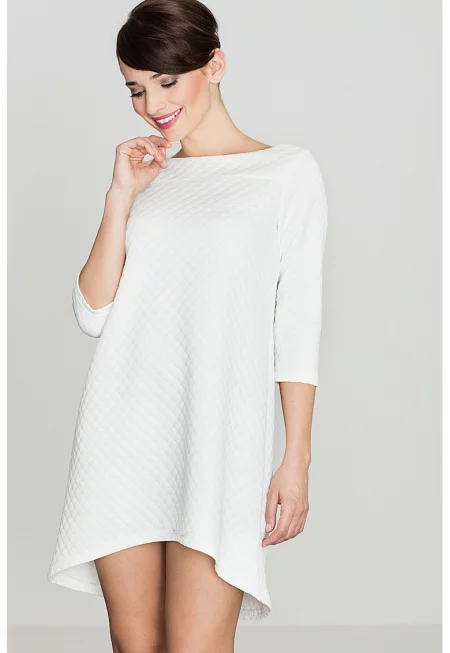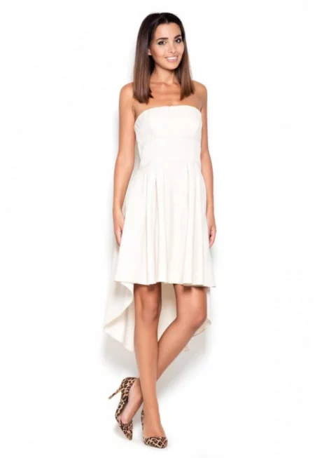 Вталена рокля L012 - асиметрична - екрю - 95% памук