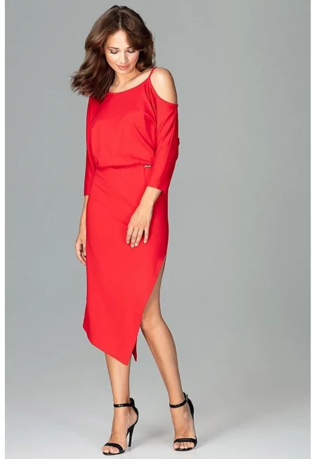 Дневна рокля 5902194372640 - Ленитиф - Полиестер/Вискоза - Червена -