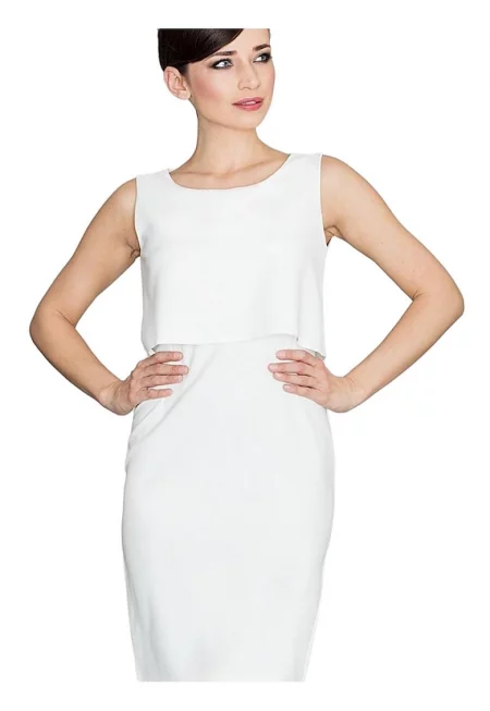 Рокля K147 - елегантна - екрю - полиестер 95% еластан 5% -