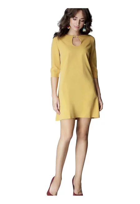 Дневна рокля - Ленитиф - 3/4 дължина - Полиестер/Вискоза - Жълто