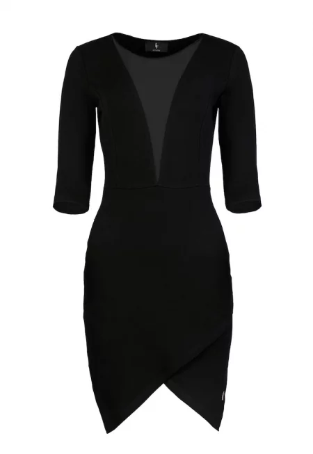 Вталена рокля L012 - асиметрична - черна - 95% памук -