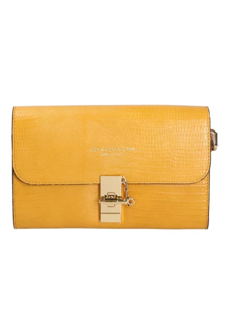 Кожена чанта през рамо - Жълто