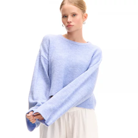 Cropp - Къс суитшърт с качулка - светлосиньо