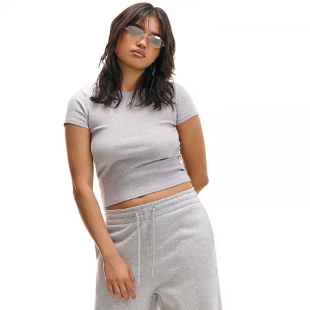 Cropp - Къс суитшърт с качулка - Светло сиво
