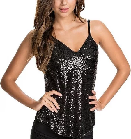 Блестящо горнище с пайети, черно