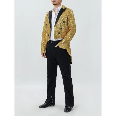 Мъжки фрак смокинг с пайети, златист