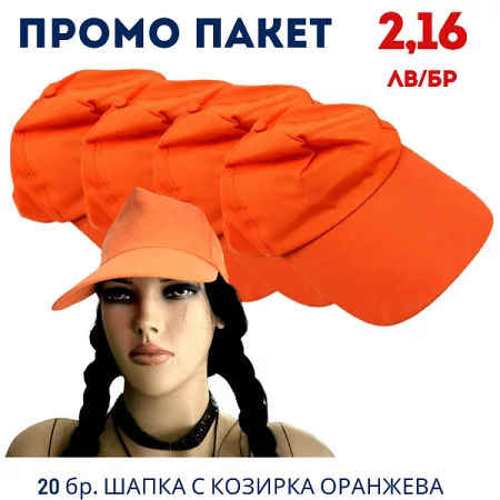 Промо пакет 20 бр. Шапка с козирка, оранжева М19-274