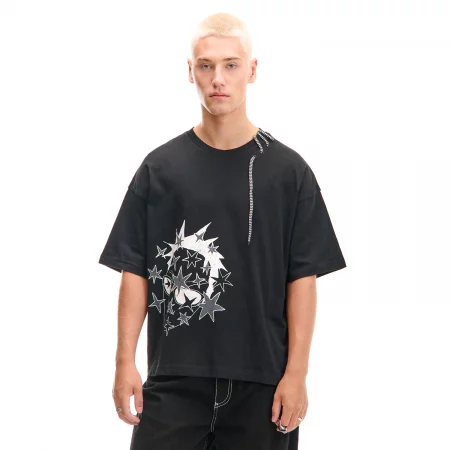 Cropp - Черен суитшърт с качулка и принт - черeн