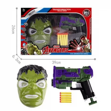 Пистолет с 5 бр. меки стрели с маска на Хълк 564-896
