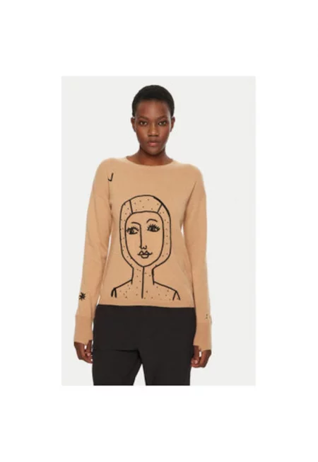 Дамски пуловер - 304735950 - Мериносова вълна/Кашмир - Бежов