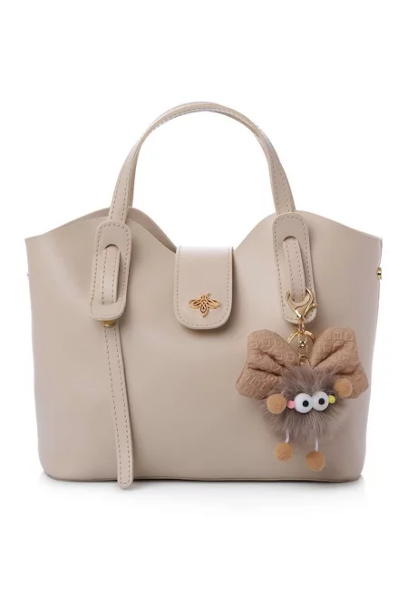 Шопър чанта с детайли от еко кожа и талисман - отворена