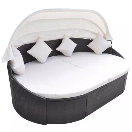 Sonata Градинско лаундж легло със сенник, полиратан, черно