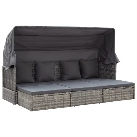Sonata Градинско легло с балдахин, сиво, 205x62 см, полиратан
