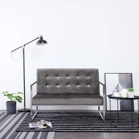 Sonata Двуместен диван с подлакътници, тъмносив, хром и кадифе