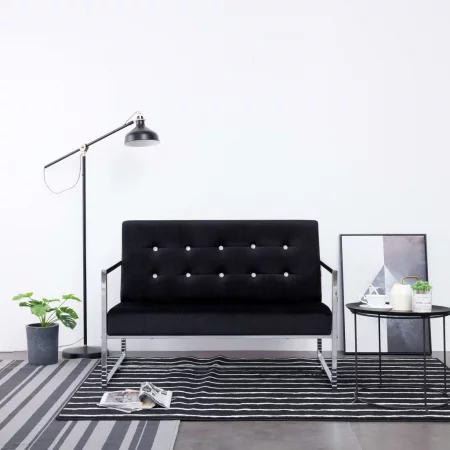 Sonata Двуместен диван с подлакътници, черен, хром и кадифе