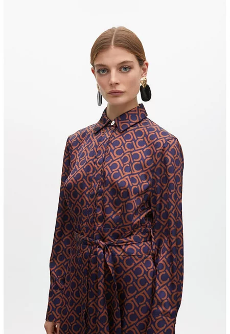 Рокля тип риза с животински принт и колан