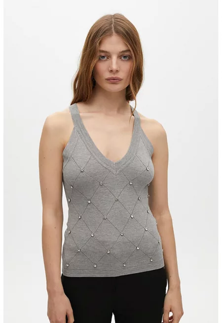 Тениска с шпиц и мъниста