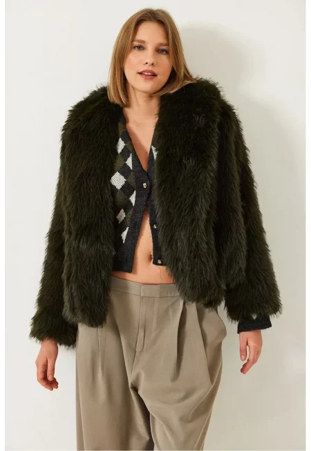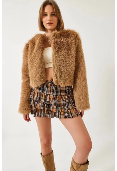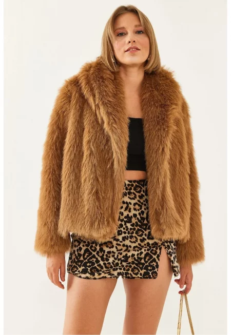 Дамско яке - HiCCUP - Изкуствена козина - Кафяв