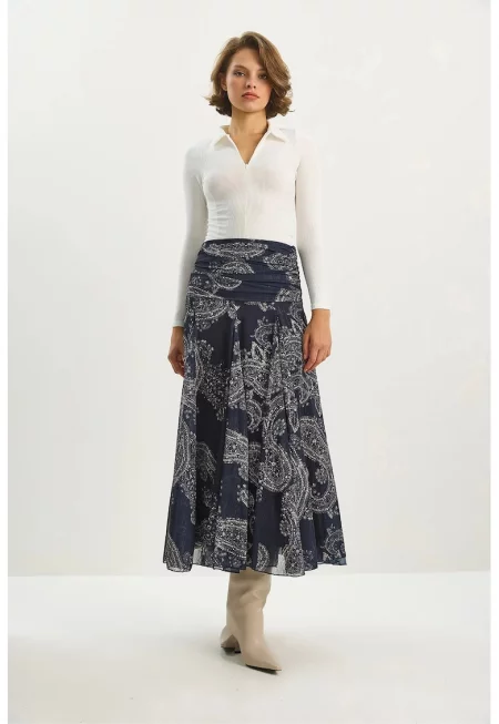 Миди пола HiCCUP с висока талия - етно принт - морско синьо - текстил