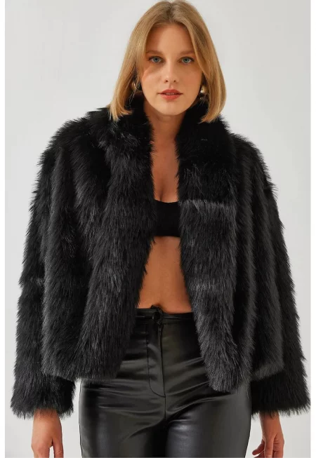 Дамско палто HiCCUP - Изкуствена кожа - Черно