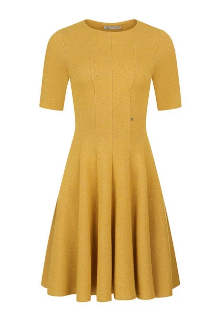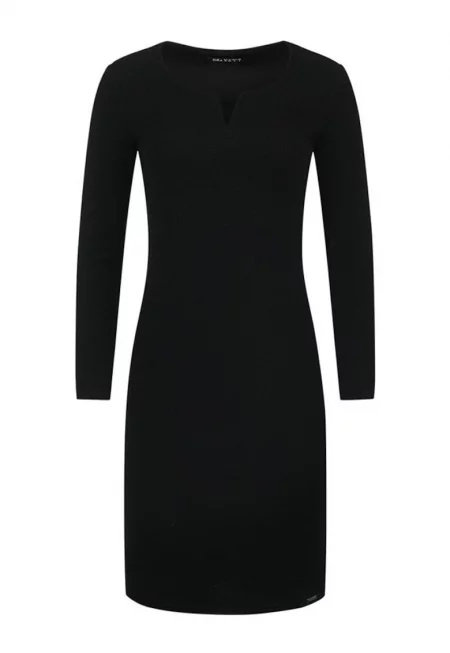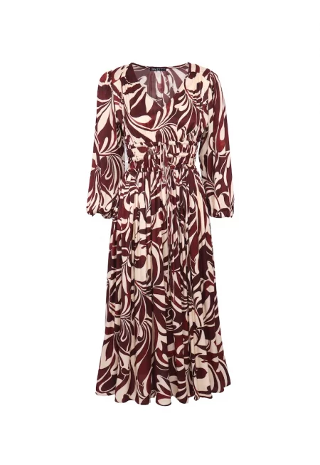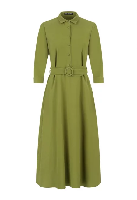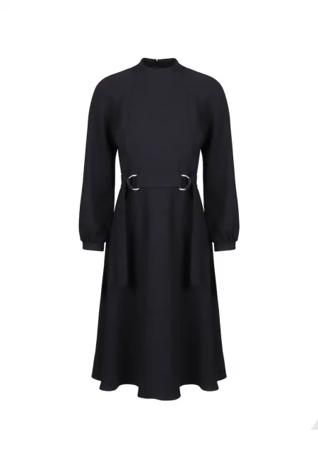 Разкроена рокля с дълъг ръкав и цепка с копчета