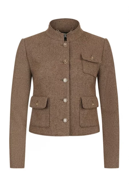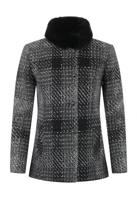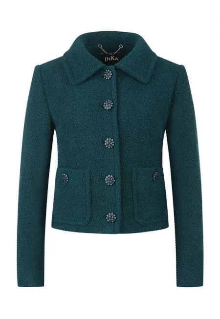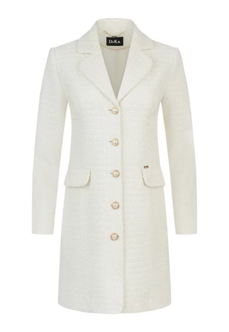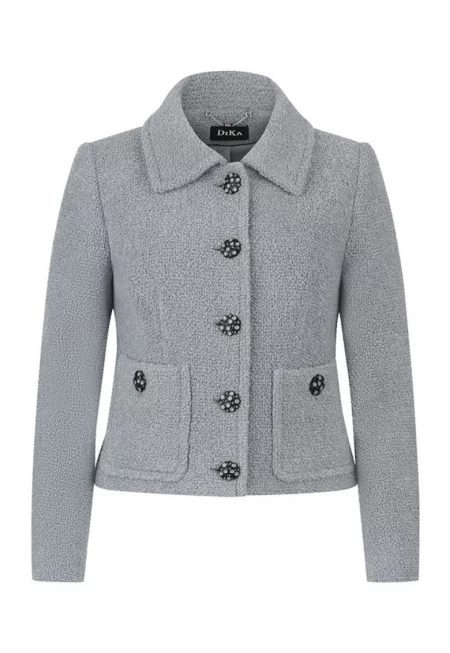 Късо палто от вълнена смес букле - с копчета тип бижу