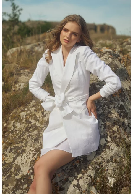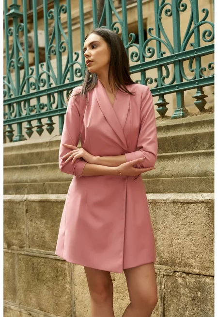 Рокля топ сако с 3/4 ръкави - Розова сьомга