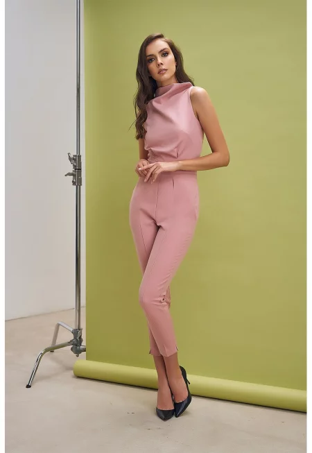 Скъсен гащеризон без ръкави - Пастелнорозов