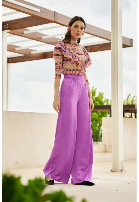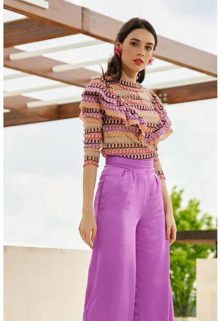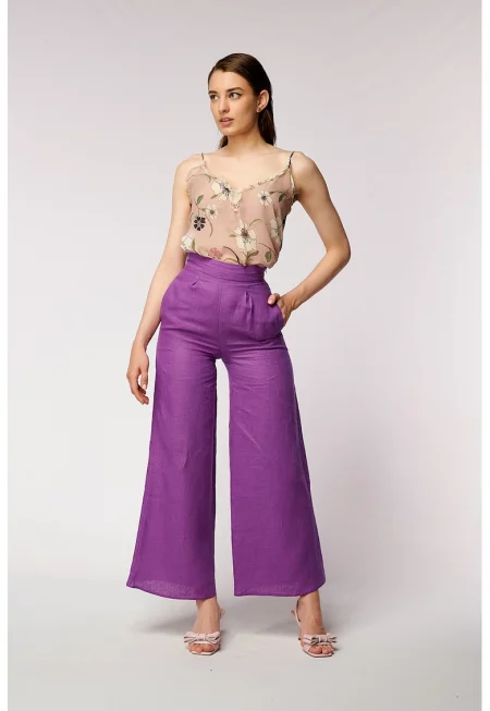 Панталони AVENUE №29 - Широки - Ленени - Виолетов/Аметист