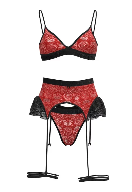 Дантелен комплект Red Desire - 3 части