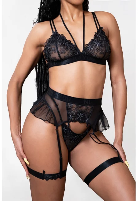 Дантелен комплект After Midnight - 3 части - Черен
