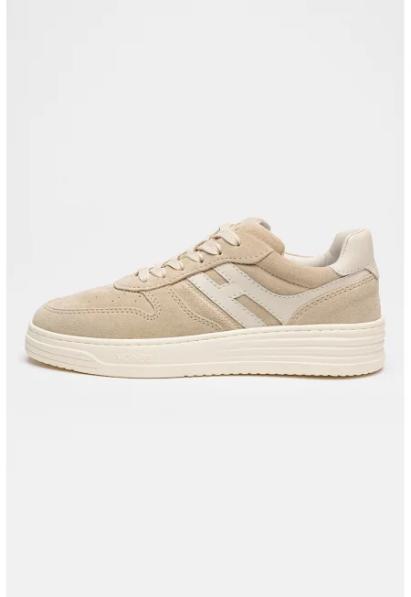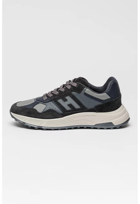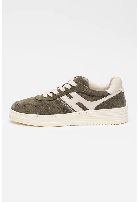 Велурени спортни обувки H630 с кожа - Сив/Мръснобял