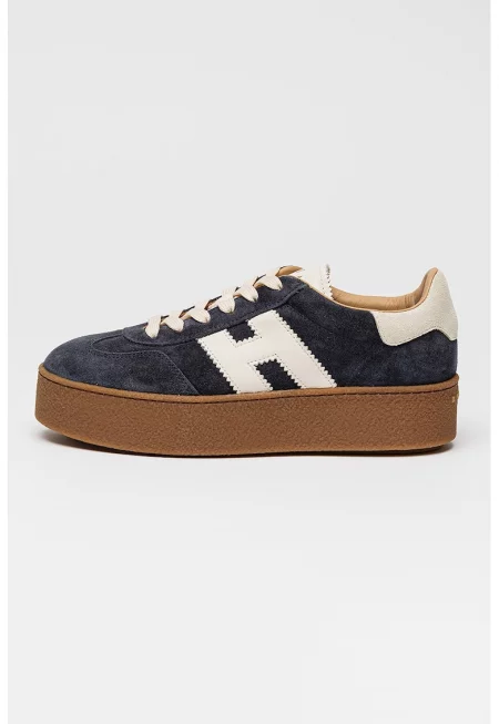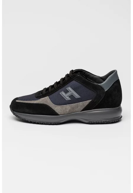 Спортни обувки от кожа и велур - Черен/Тъмносин