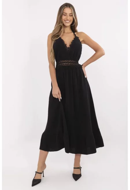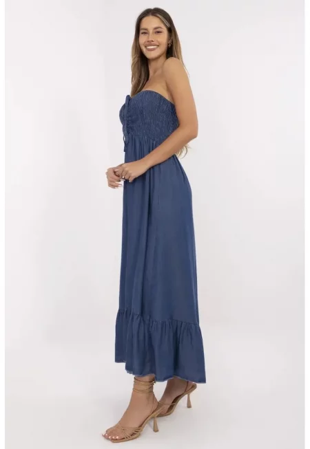 Рокля памук - V-образно деколте - тъмносиня - един размер