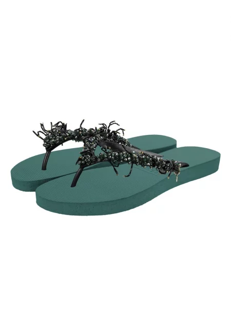 Чехли Dolce Turquoise с декоративни камъни - Зелен