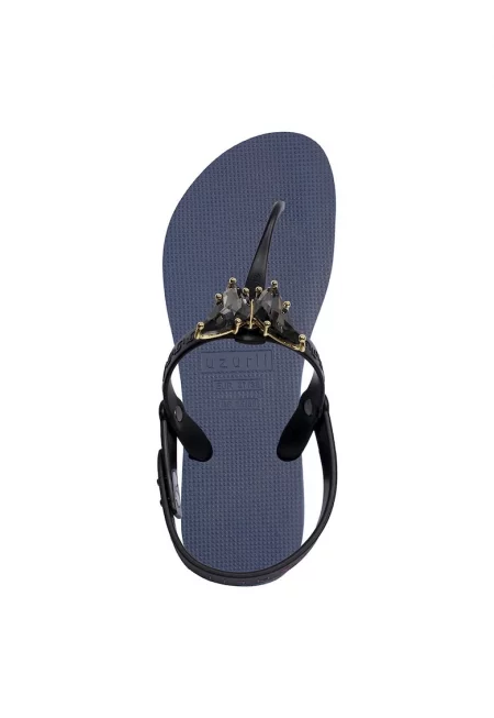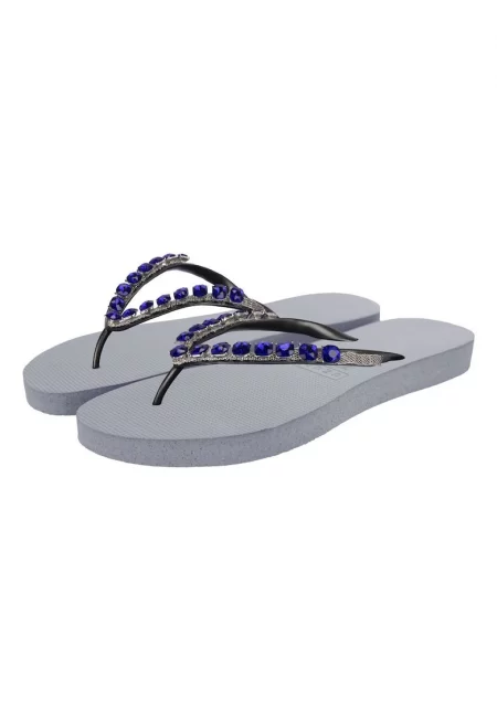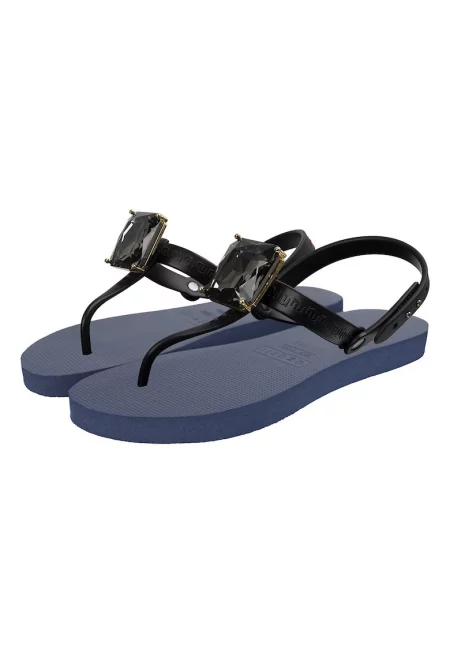 Сандали с разделител за палеца и декоративни камъни - Тъмносин