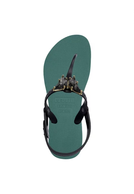 Сандали с разделител за палеца и декоративни камъни - Зелен