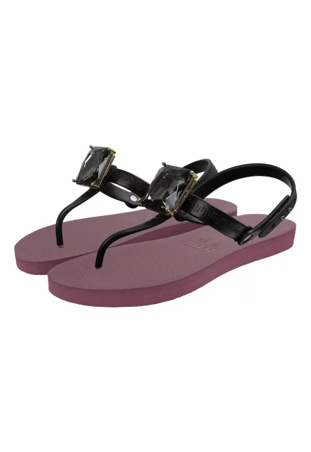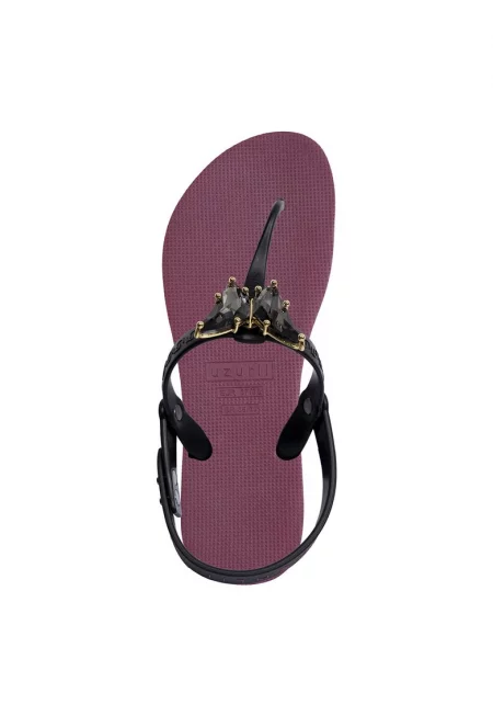 Сандали с разделител за палеца и декоративни камъни - Бордо