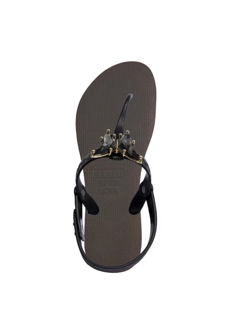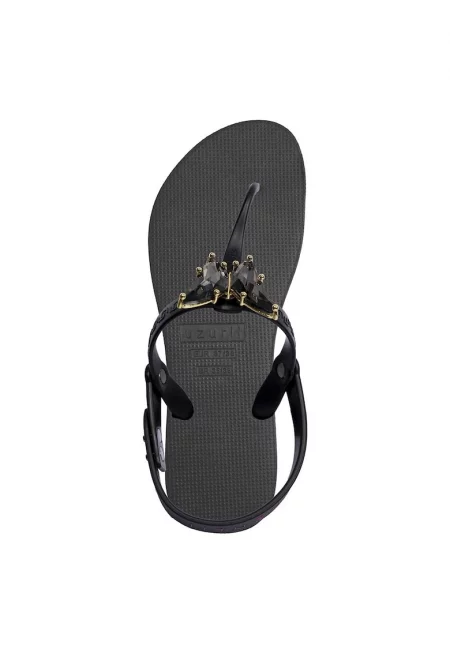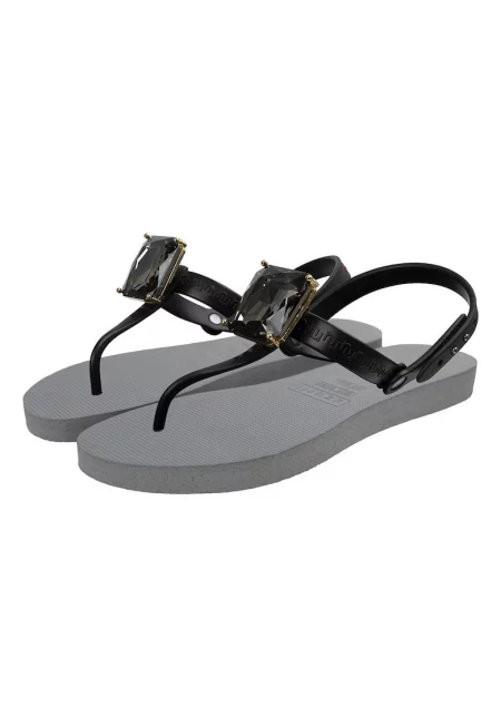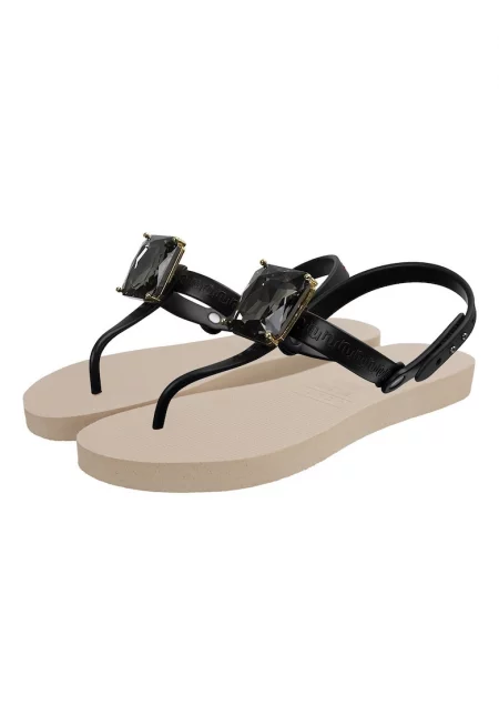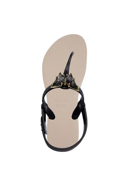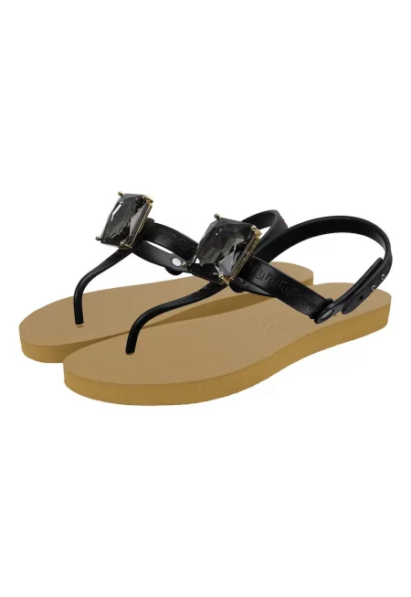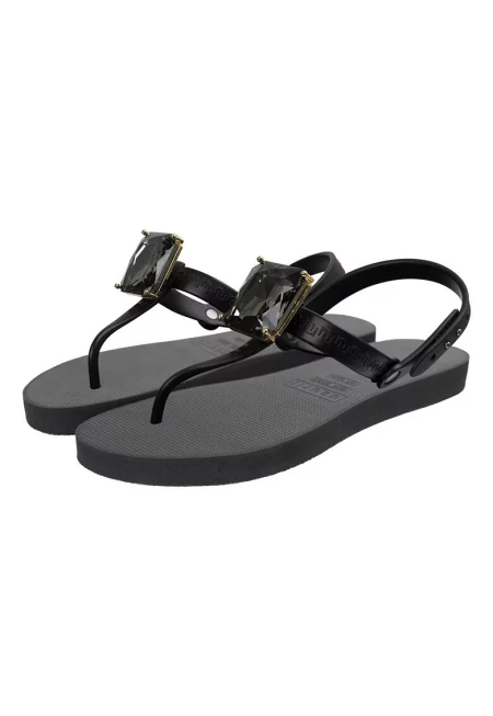 Сандали с разделител за палеца и декоративни камъни - Черен