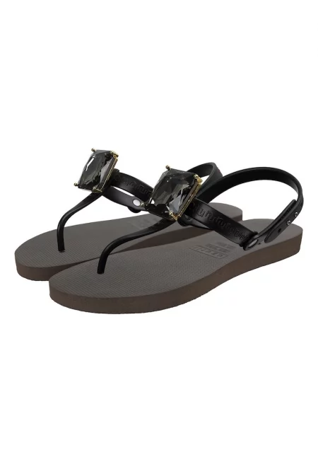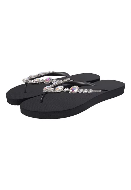 Чехли Dolce Turquoise с декоративни камъни - Черен