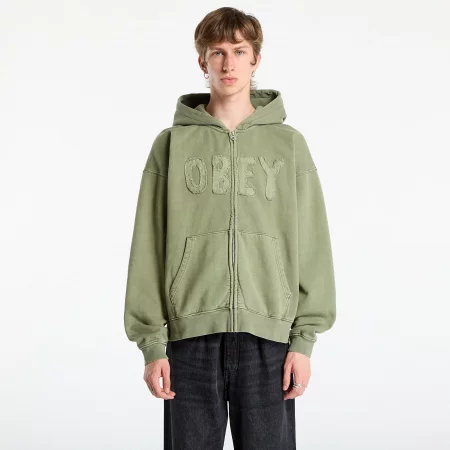 Суитшърт OBEY Hybrid Faded Zip Hood Deep Lichen Green Faded Wash M
