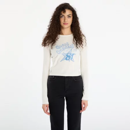 Тениска Guess Originals Star 81 Printed cropped T-shirt Cream L