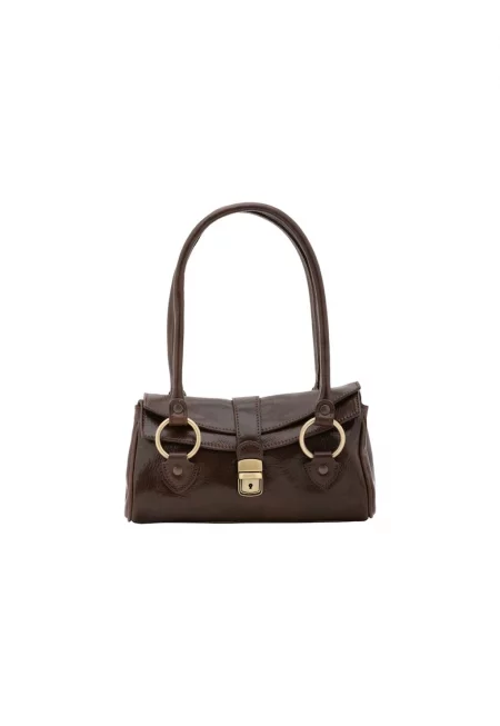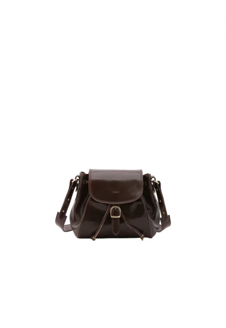 Кожена чанта през рамо с капса - Тъмнокафяв
