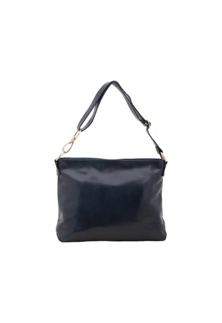 Кожена чанта през рамо с дълги презрамки - Син