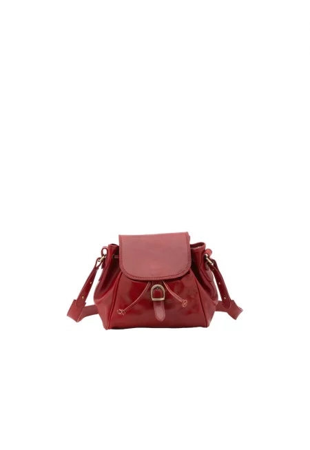 Кожена чанта през рамо с капаче - Червен