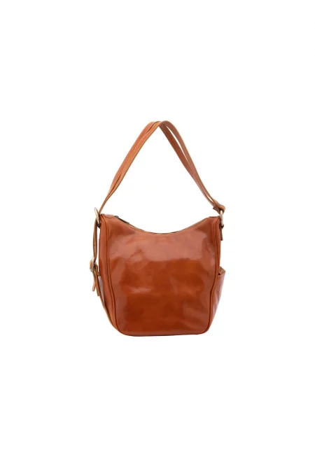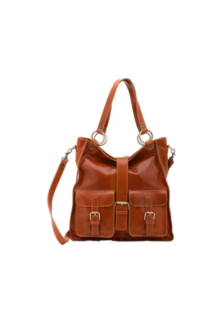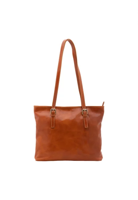 Кожена шопинг чанта с регулируеми презрамки - Коняк кафяв