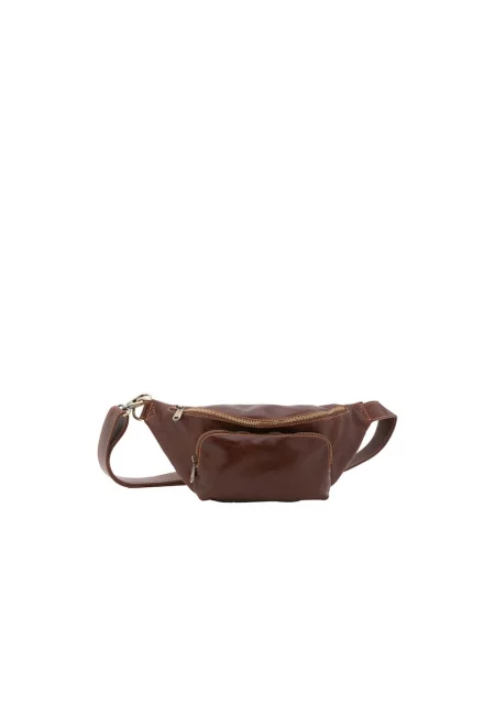 Кожена чанта за кръста с регулируема препаска - Кафяв
