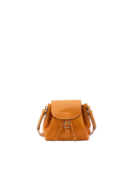 Кожена чанта през рамо с капса - Синапено жълто