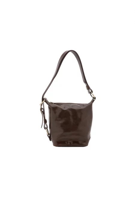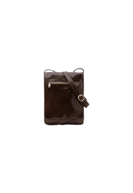 Кожена чанта през рамо с регулируема презрамка - Тъмнокафяв
