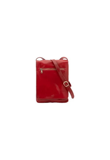 Кожена чанта през рамо с регулируема презрамка - Червен